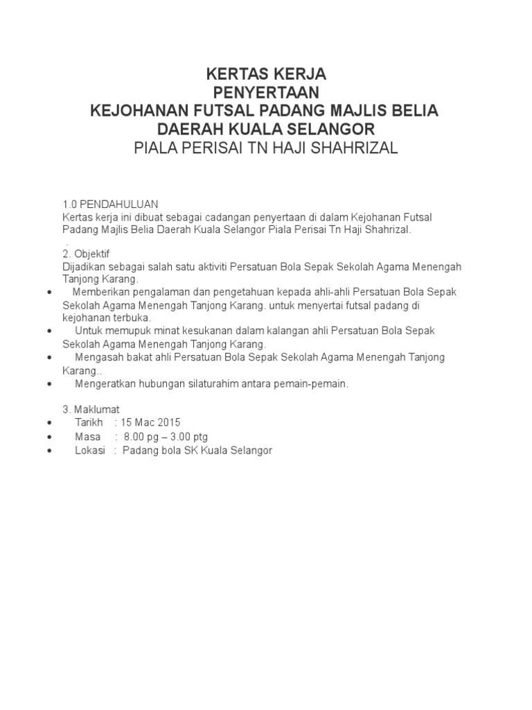 Ismail sabri bin yaakub menteri belia dan sukan kementerian belia dan sukan. Kertas kerja bulan sains dan matematik. Download contoh kertas kerja anda sekarang. Budaya sukan dalam kalangan semua murid adalah untuk memperlengkap kecemerlangan sistem pendidikan bagi melahirkan modal insan yang seimbang dan holistik dari segi jasmani, emosi, rohani. • kertas kerja kejohanan sukan tahunan ipbmm 2007.