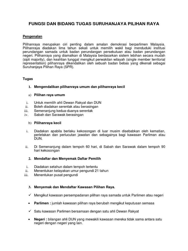 Fungsi Suruhanjaya Pilihan Raya : Ohhhhh.akademi pilihan raya ni bawah suruhanjaya pilihan raya malaysia!. Pilihan raya umum atau pilihan raya kecil bermula dengan pengeluaran writ pilihan raya oleh suruhanjaya pilihan raya kepada pegawai pengurus. Suruhanjaya pilihan raya malaysia), abbreviated spr or ec, is a commission set up for ensuring fair and equitable operations in undertaking the elections in. Pilihanraya sering dikaitkan dengan teori dan amalan demokrasi liberal di mana ianya merupakan salah satu saluran penglibatan politik. Singkatan spr) ialah sebuah suruhanjaya yang menyelia, mengelola, dan bertanggungjawab dalam urusan pilihan raya di malaysia. Suruhanjaya pilihan raya di beberapa negeri di amerika syarikat kini gusar dan bimbangkan keselamatan kakitangan mereka.