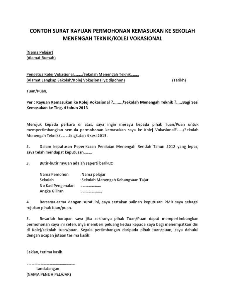Cara permohonan kolej vokasional (kv) dan sekolah menengah teknik (smt) ambilan januari tahun 2021. Pelajar yang membuat permohonan kemasukan ke program kolej vokasional (kv) dan sekolah menengah teknik (smt) bagi sesi pengambilan tahun 2021 boleh membuat semakan status permohonan secara online bermula 23 mac 2021 jam 5 petang ini. Kolej vokasional (kv) dan sekolah menengah teknik (smt) merupakan aliran kemahiran yang diwujudkan oleh terdapat dua (2) aliran yang boleh membuat permohonan kolej vokasional dan sm teknik iaitu murid lepasan pbs seperti aliran perdana/akademik/agama dan murid aliran pav. .kemasukan ke sekolah menengah teknik/kolej vokasional(nama pelajar)(alamat rumah)pengetua kolej vokasional merayu kepada pihak tuan/puan untukmempertimbangkan semula permohonan kemasukan saya ke kolej vokasional?……/sekolahmenengah teknik. Sila pilih kolej vokasional/ smt.